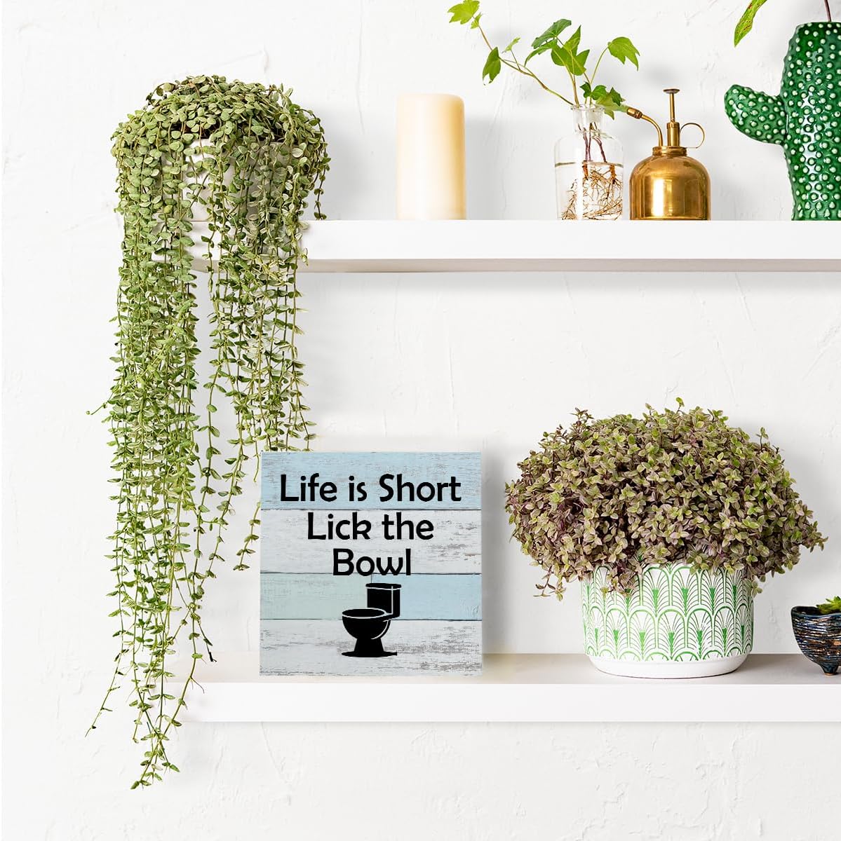 Life is Short Lick the Bowl Sign, Funny Bathroom Decor, Funny Toilet decor Sign, Above Toilet Decor Kitchen Signs Toilet Bathroom Washroom Decor, Home Wood Block Plaque Desk Shelf Decor. White